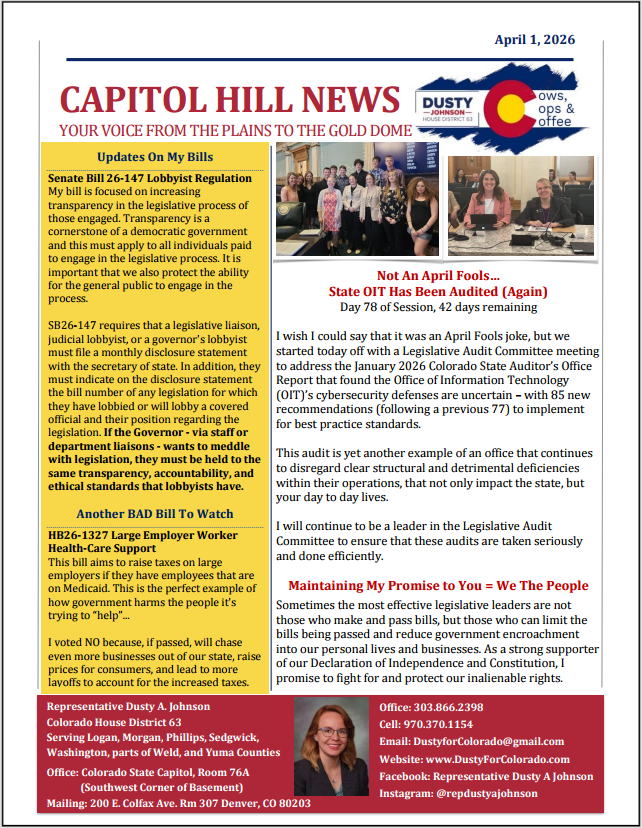 Capitol Hill News - April 1, 2026 - Not An April Fools...State OIT Has Been Audited (Again)