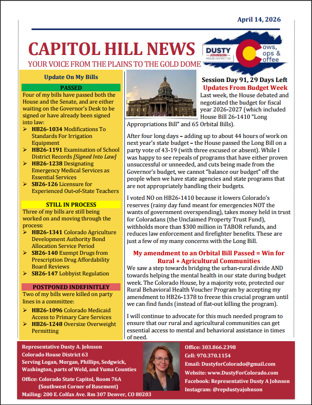 Capitol Hill News - April 14, 2026 - Update On My Bills