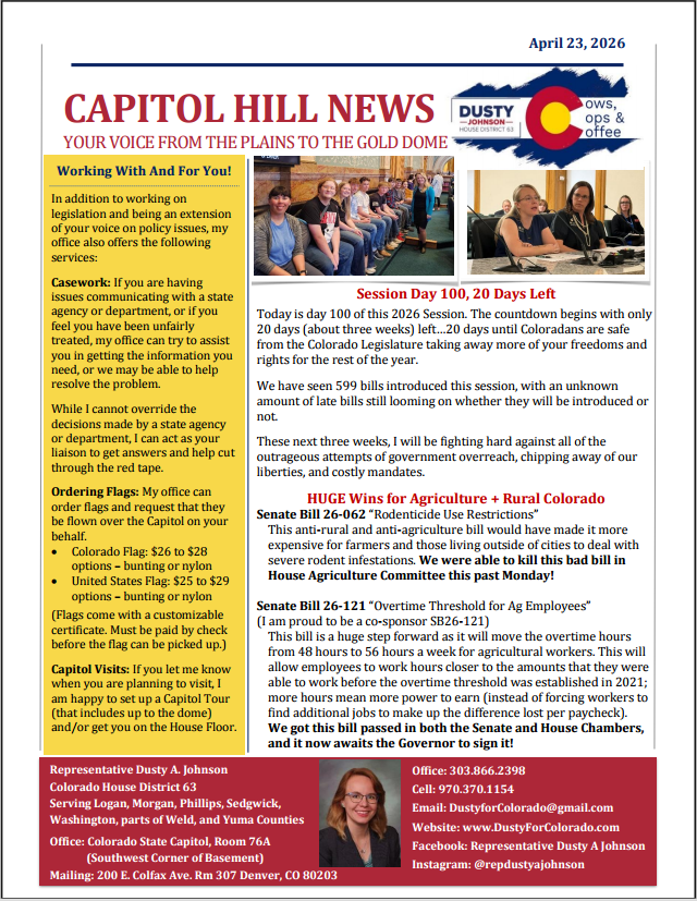 Capitol Hill News - April 23, 2026 - Session Day 100, 20 Days Left
