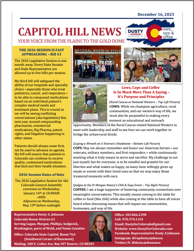 Capitol Hill News - November 6, 2025 - Working Hard for You, the People of HD63, In Colorado and Abroad