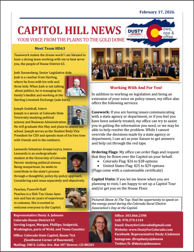 Capitol Hill News - February 2, 2026 - Bringing Our Rural Values to the Capitol