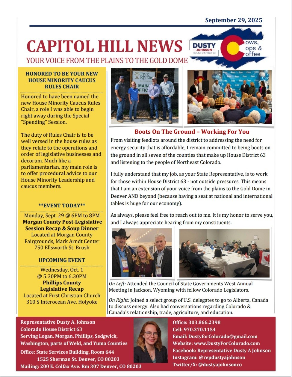 Capitol Hill News - September 29, 2025 - Boots On The Ground, Working For You
