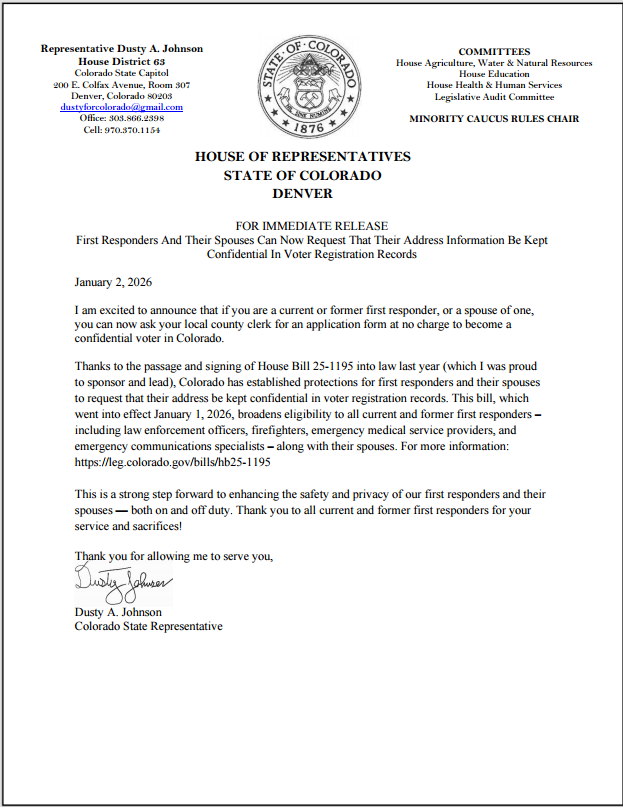 Capitol Hill News - November 6, 2025 - Working Hard for You, the People of HD63, In Colorado and Abroad